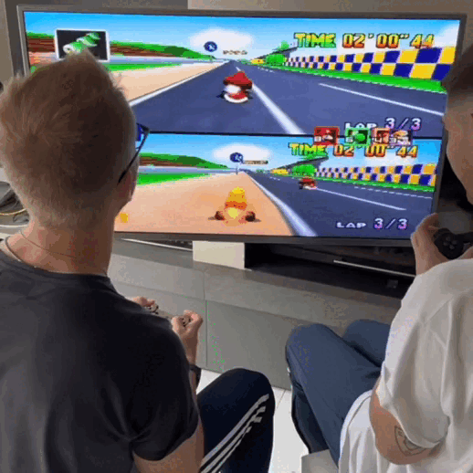 Compré la Retro Gameflix pensando que era para mi hijo, pero la verdad es que juego más yo jajaja. Tiene juegos que jugaba de chico y es terrible la nostalgia. La imagen se ve impecable en pantalla grande, los controles son cómodos y funciona todo perfecto. Los dos controles incluidos son un golazo. Re conforme con la compra!
