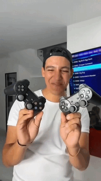 Joysticks Inalámbricos Incluidos: Sin cables, sin configuraciones complejas. Solo conectá el dispositivo y empezá a disfrutar al instante. Cero estrés, pura diversión.